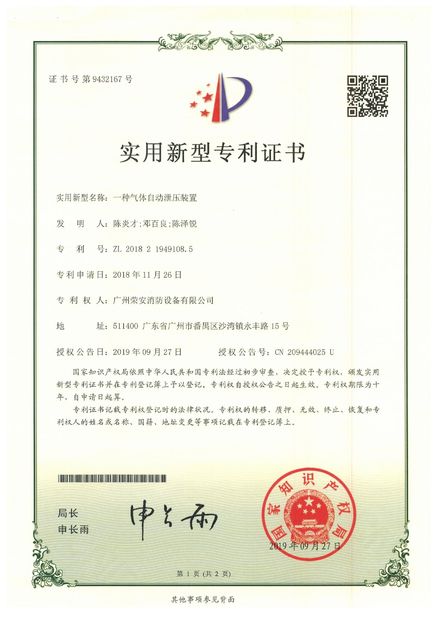 ضمان الجودة لشركة Guangzhou Rongan Fire Control Equipment Co. Ltd